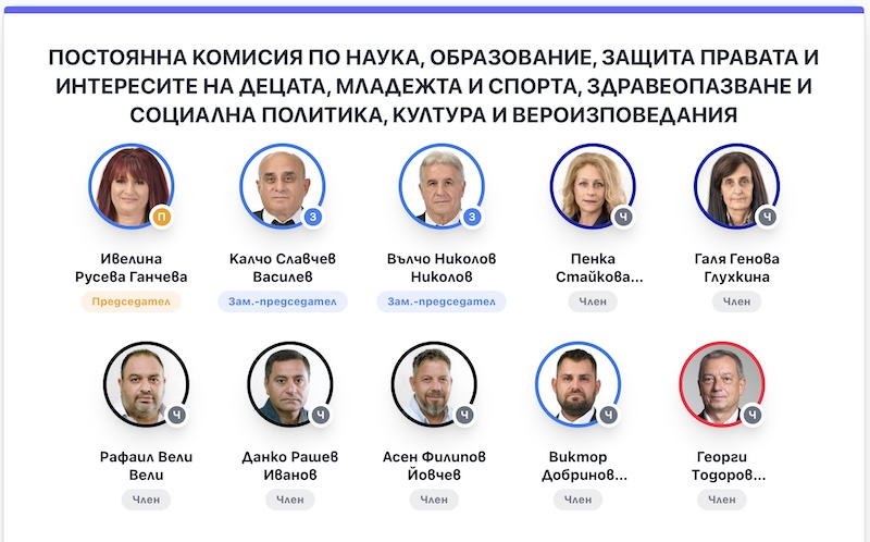 ПОСТОЯННА КОМИСИЯ ПО НАУКА, ОБРАЗОВАНИЕ, ЗАЩИТА ПРАВАТА И ИНТЕРЕСИТЕ НА ДЕЦАТА, МЛАДЕЖТА И СПОРТА, ЗДРАВЕОПАЗВАНЕ И СОЦИАЛНА ПОЛИТИКА, КУЛТУРА И ВЕРОИЗПОВЕДАНИЯ